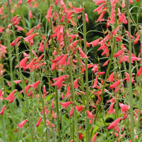 An upright perennial with striking scarlet flower spikes. Thrives in sunny positions ,where it blends well with ornamental grasses such as Stipa ichu and Deschampsia .Flowers appear in Spring and will often reappear in Autumn if given a light trim. Free draining soils are essential.