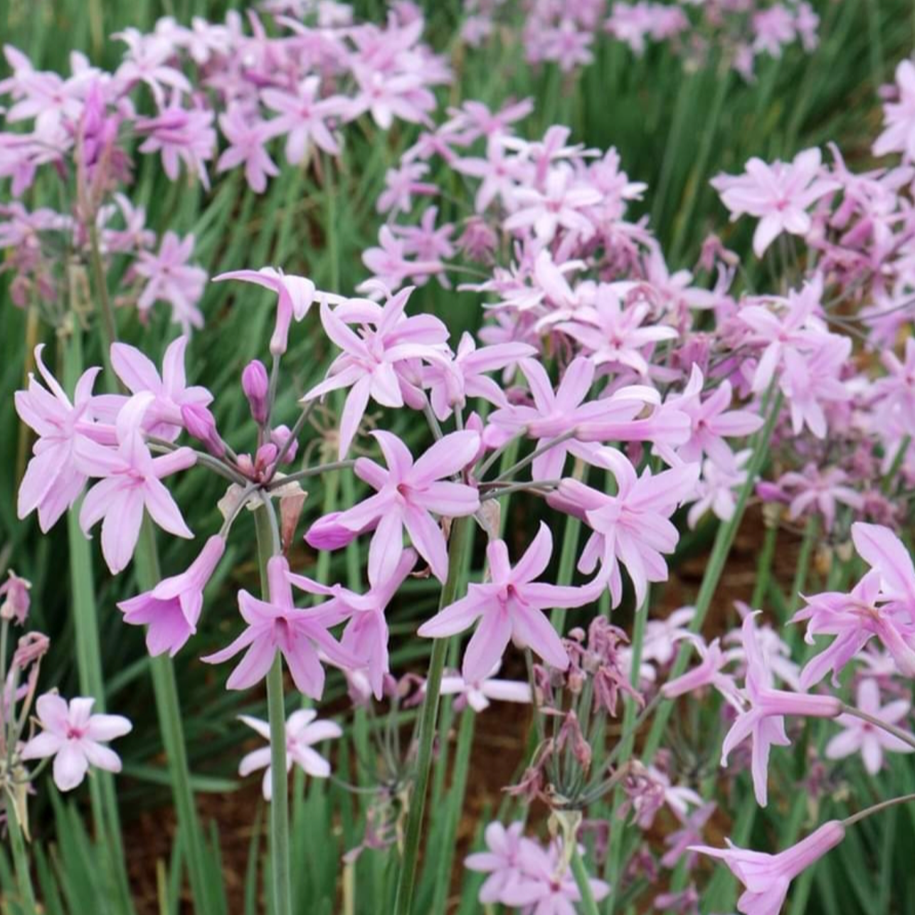 A well loved plant by many gardeners who know this simply as 'Society Garlic' . A very handy plant to use as an edging to paths or as filler when planted in groups. Beautiful pink flowers are produced over Summer and into Autumn . Foliage is strongly scented of garlic when brushed against. Does best in full sun positions.